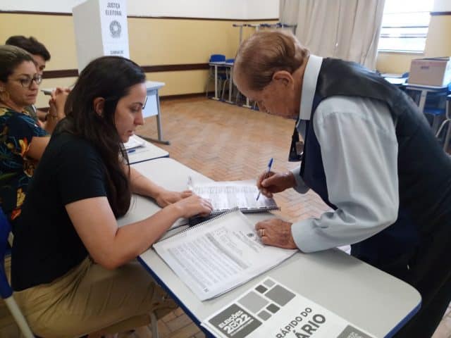 Na seção em que vota, Antônio virou-se os mesários e disse: “feliz que nem um moleque”, arrancando sorrisos dos voluntários.