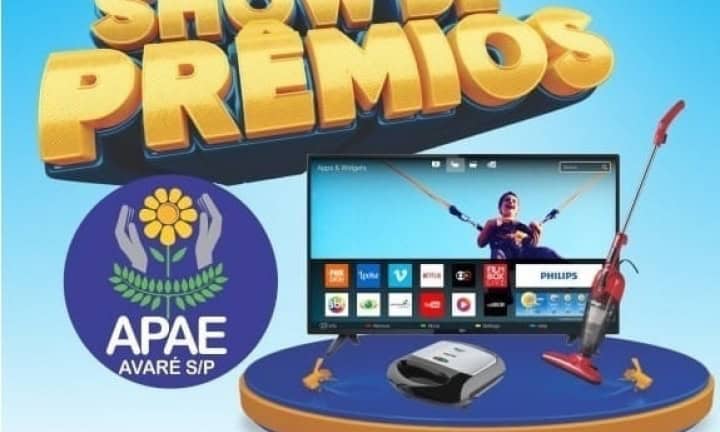 O Show de Prêmios da Apae Avaré é mais uma oportunidade para a comunidade colaborar com o excelente trabalho feito pela entidade. Os compradores das cartelas sorteadas vão ganhar um aparelho de TV 43” (1º prêmio), um aspirador de pó (2º prêmio) e uma sanduicheira (3º prêmio).
