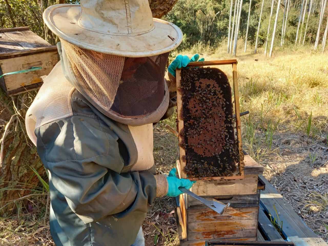 Jornal A Comarca – O Apiário está completando 8 anos em 2021, quantos enxames/colmeias aproximadamente vocês salvaram?