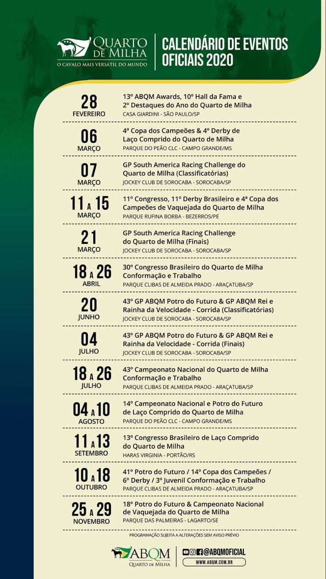 O calendário de eventos oficiais da ABQM, que se encontra no site da entidade (portalabqm.com.br), não traz nenhum evento da raça para a cidade de Avaré, que durante mais de uma década sediou tanto o Congresso Brasileiro como o concorrido Campeonato Nacional (mês de julho) e o Potro do Futuro (outubro).