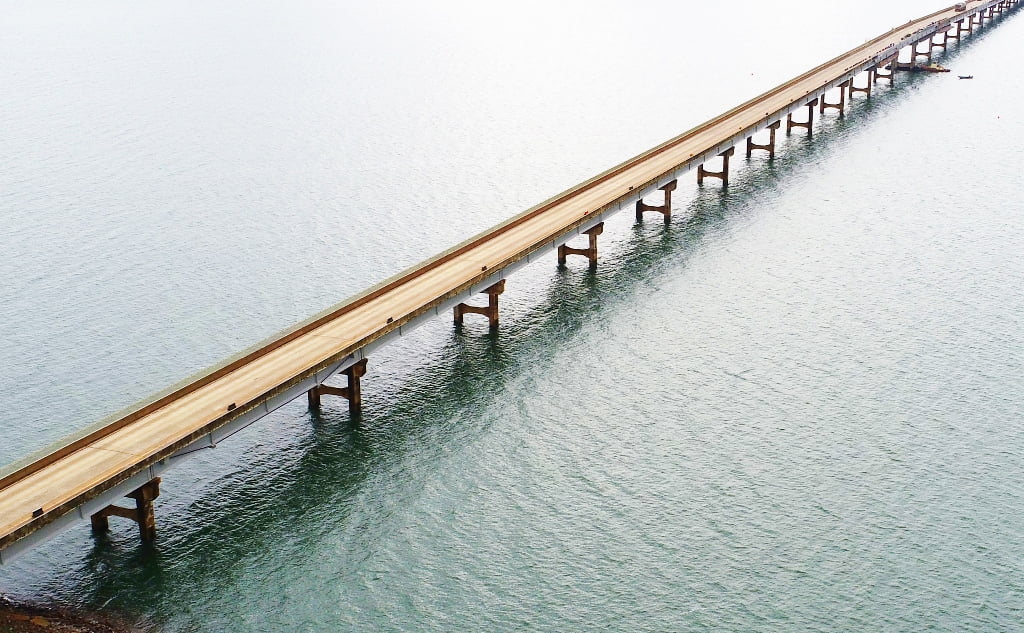plataformas sobre a água. Por isso a escolha da balsa, pois sem ela seria necessário interditar a pista de tráfego para transportar materiais e ferramentas. Então, foi essencial termos esse apoio fluvial”, afirma.