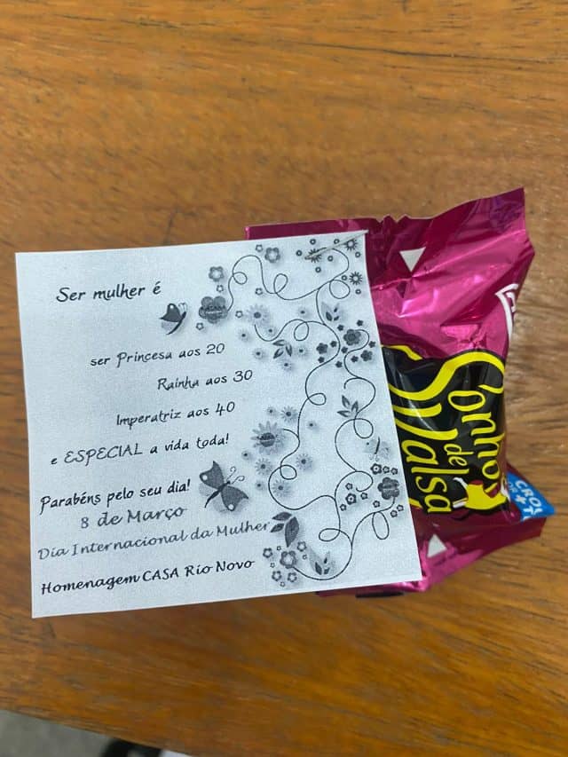 Ao final do evento, as participantes da roda de conversa receberam bombons como uma mensagem especial sobre o que é ser mulher.