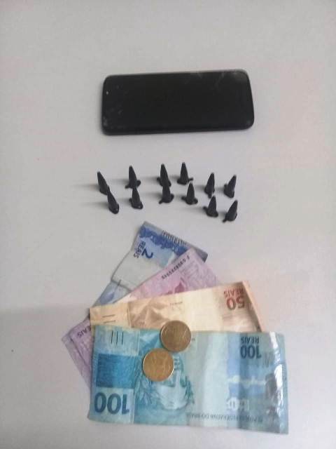 DROGA – Durante a abordagem, um jovem de 15 anos tentou empreender fuga, mas acabou detido portando 12 pinos de cocaína e a quantia de mais de R$ 160 em dinheiro.