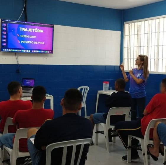 Os jovens que cumprem medida socioeducativa no centro da Fundação CASA João Paulo II, da cidade de Cerqueira César (DRS), participaram na manhã desta quarta-feira (30/03) de uma palestra com a Youtuber do Canal “Gis com Giz, matemática sem complicações”, Gislaine Bezerra.