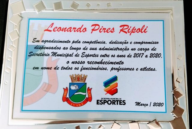 NOTA PÚBLICA – “A vida é feita de caminhos que se cruzam, uns para sempre, outros por determinado tempo. Mas o que tem valor, são as nossas conquistas nesses últimos quatro anos que estivemos a frente da SEME. A cada dia um novo aprendizado sempre focado e dedicado por um bem comum. Foi um prazer trabalhar com todos vocês da Secretaria Municipal de Esportes, mas está chegando o momento de encarar novos desafios em minha vida. Se hoje a nossa pasta é considerada um exemplo, isso se deve aos professores, funcionários, atletas, estagiários, enfim, a todos nós, que unidos, trabalhamos com afinco por melhorias, o que se refletiu no dia a dia. Entregarei a pasta, com a consciência de dever cumprido, assim como fiz nas outras duas Secretarias onde já estive a frente, Comunicação e Turismo. Mas o mais importante, serão as lembranças e as amizades que fiz a frente da Secretaria Municipal de Esportes. Obrigado pela compreensão, paciência e principalmente o apoio. Agradeço ainda a homenagem que recebi de todos os funcionários no dia de hoje, infelizmente por conta da pandemia que estamos enfrentando, os abraços ficarão para uma próxima oportunidade. Que Deus abençoe a todos!”
