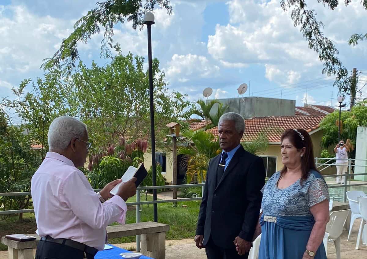 A celebração ocorreu ao ar livre, seguindo os protocolos de segurança contra a Covid-19. A benção aos noivos foi ministrada pelo pastor Ditinho, da Igreja Assembleia de Deus – Belém.