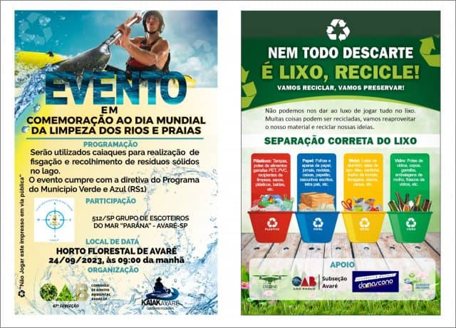 Na nova ação serão utilizados caiques para realização de fisgação e recolhimento de resíduos sólidos no lago. Haverá participação do 5123/SP – Grupo de Escoteiros do Mar “Paraná” de Avaré. A organização está a cargo da Comissão de Direito Ambiental da 67ª Subseção da Ordem dos Advogados do Brasil (OAB) de Avaré.