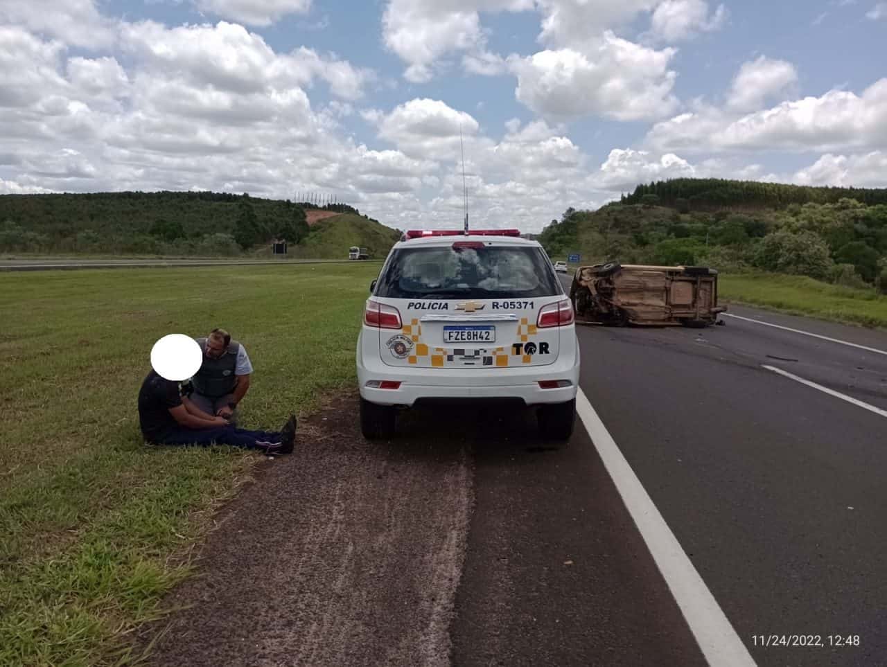 A equipe prestou os primeiros socorros e procedeu a sinalização do local. O homem não sofreu ferimentos graves e os policiais militares rodoviários passaram a tranquilizá-lo quanto à situação pessoal que estava enfrentando. Após o atendimento da ocorrência no local, os policiais militares rodoviários encaminharam o condutor e seu veículo à base operacional e aguardaram a chegada de sua esposa, familiares e amigos que o acolheram.