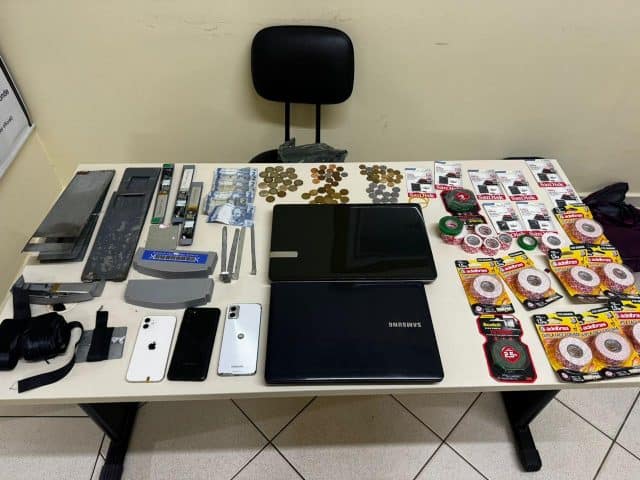 O dispositivo, conhecido como ‘jacaré’, é utilizado para retiradas de envelopes de depósitos bancários. Também foram localizados dois aparelhos notebooks com programas para salvar os dados dos cartões clonados durante a prática delituosa.