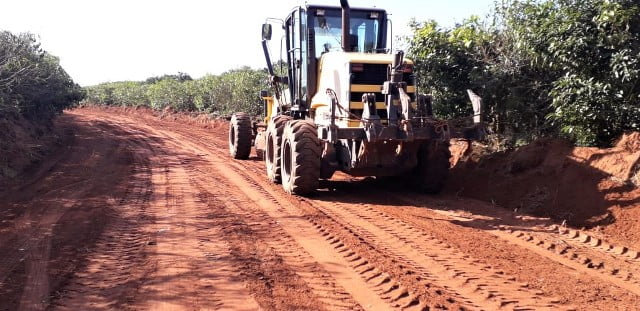 O maquinário da Secretaria de Serviços, responsável pela execução, foi empregado na retirada de bancos de terra que se formam no trecho por conta das características do solo, dificultando o trânsito de caminhões na importante rota de escoamento da produção agrícola.