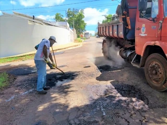 Os servidores da pasta também recolocaram lajotas em um ponto da Rua Santos Dumont e realizaram mais uma etapa da Operação Tapa-buracos no Bairro Alto da Colina.