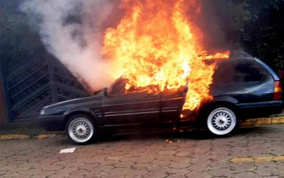 “Parei o carro por causa da fumaça e tirei meu filho de 3 anos de dentro do veículo. Daí começou a pegar fogo dentro do painel e eu não sabia o que fazer. Algumas pessoas tentaram me ajudar a conter o fogo, foi muito rápido. Só consegui tirar o botijão de dentro do carro. Chamara os bombeiros para apagar o fogo e, quando meu marido chegou, não tinha mais nada a fazer. Até na árvore começou a pegar fogo. Deu perda total”, disse.