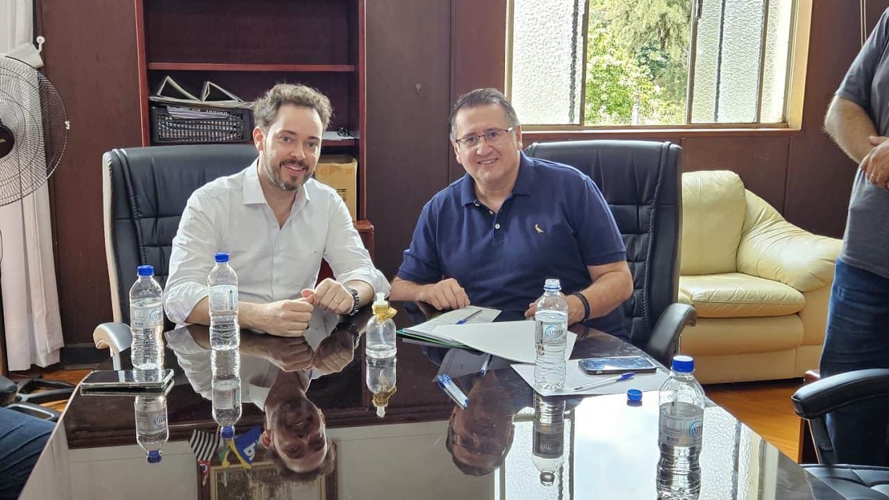 O prefeito Roberto Araujo recebeu na terça-feira, 7, o prefeito de Taquarituba Éder Miano.