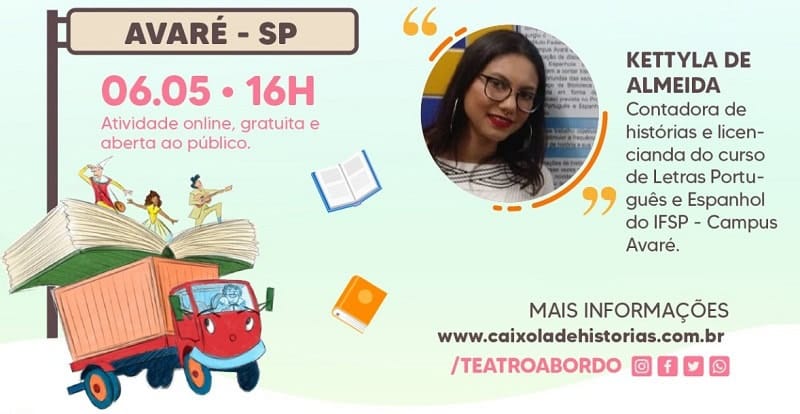 A Estância Turística de Avaré recebe na quinta-feira, 6 de maio, o Caixola de Histórias para Ler e Ouvir, projeto de itinerância virtual que envolve contação de histórias.