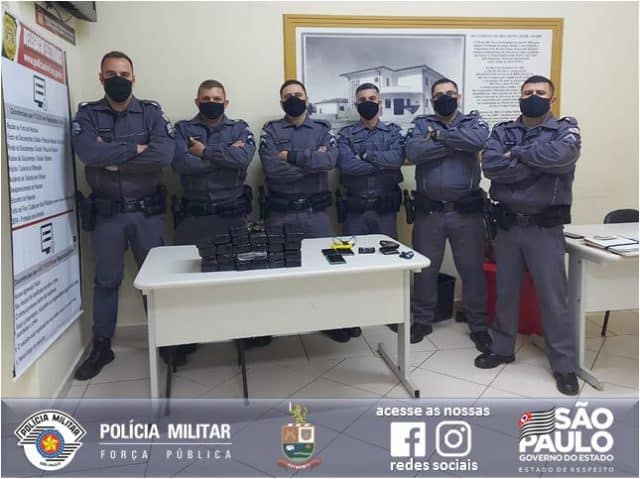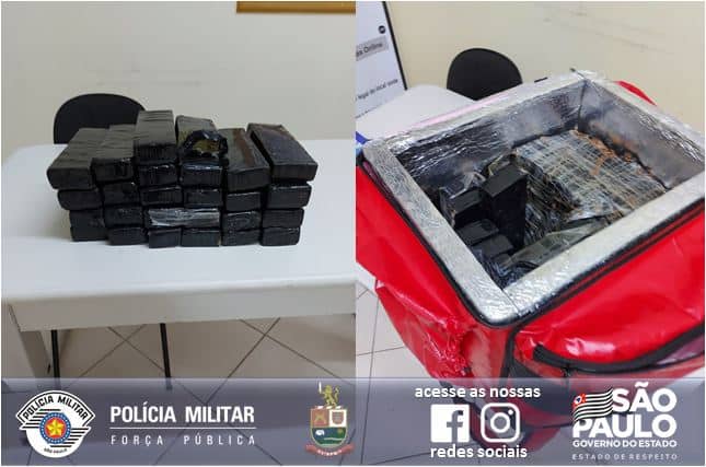 De início os policiais sentiram forte odor de maconha vindo de dentro do carro, e ao verificarem o conteúdo de uma caixa térmica localizaram 25 (vinte e cinco) tijolos de maconha. Já durante buscas pessoais foram localizadas 06 (seis) porções fracionadas com um dos passageiros que, ao ser questionado, assumiu a propriedade das drogas dizendo que entregaria a uma pessoa que conheceu através das redes sociais, omitindo sua identificação.