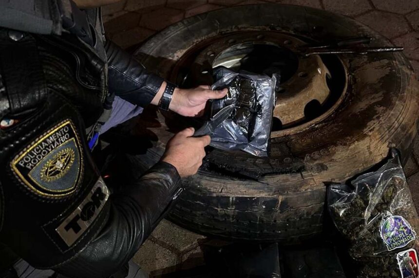Um homem de 30 anos foi preso por tráfico de drogas na Rodovia Presidente Castello Branco (SP-280), em Avaré, transportando diversas porções de drogas dentro de um dos pneus de um caminhão.